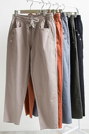 買2送1-魔法剪裁包釦修臀彈力修身褲(M-XL)