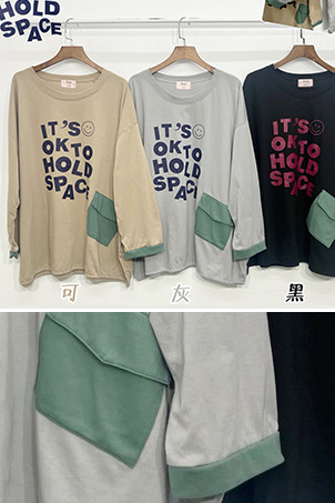 口袋撞色印字寬T-3色