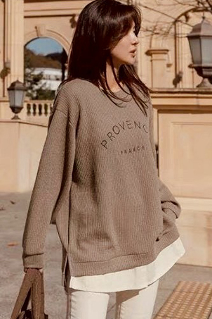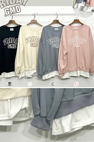 螺紋衛衣個性開叉假二件T-2色