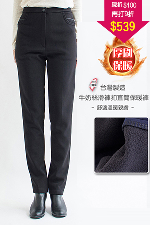 折100再打9折-MIT牛奶絲滑刷毛修身保暖褲(M-3L)