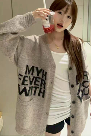 字母提花羊毛絨休閒開釦外套