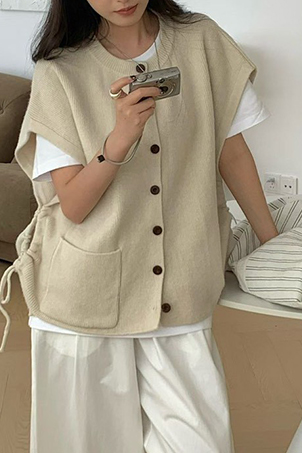 側抽繩羊毛絨疊穿外套背心