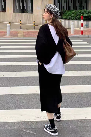 後交叉假二件衛衣+半身裙套組-2色