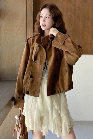 雙排釦麂皮絨短外套-2色