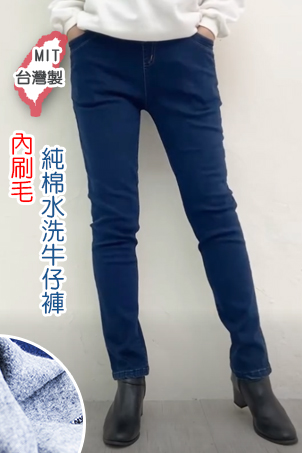 現折$200-內刷毛-純棉水洗牛仔褲(M-2L)