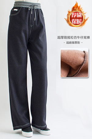 特$399-超厚內刷搖粒仿牛仔寬褲(M-2L)
