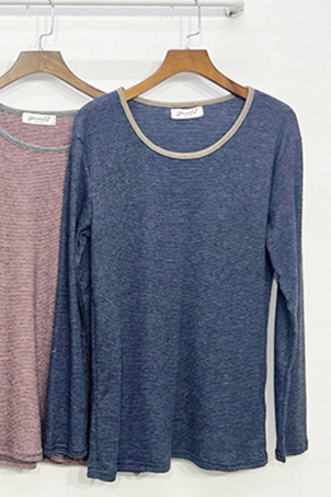 細條配色圓領上衣-5色