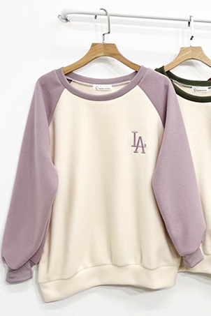 袖接色刺繡刷毛T-5色