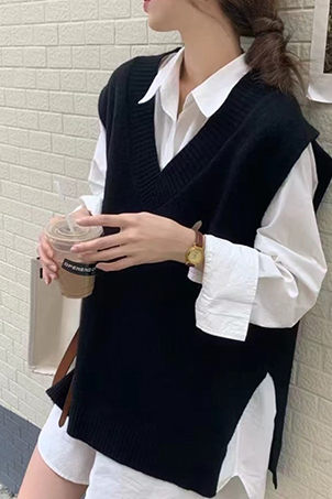 針織V領背心-4色