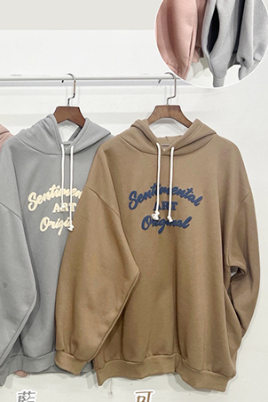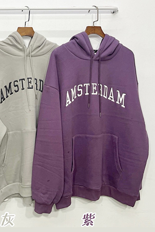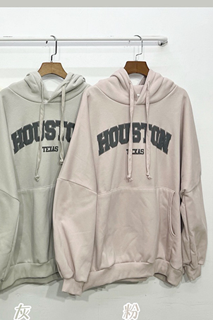 發泡英字內刷毛帽T-4色