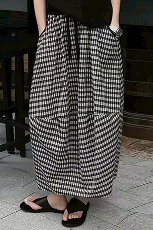 剪接高腰格紋花苞裙
